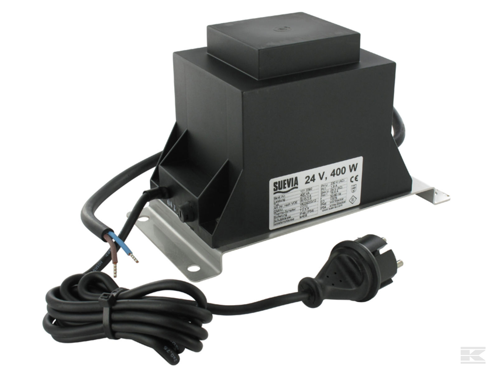 Muuntaja 210 W lämminvesijuomakuppeihin. Muuntaa jännitteen 230 V:sta 24 V:iin.