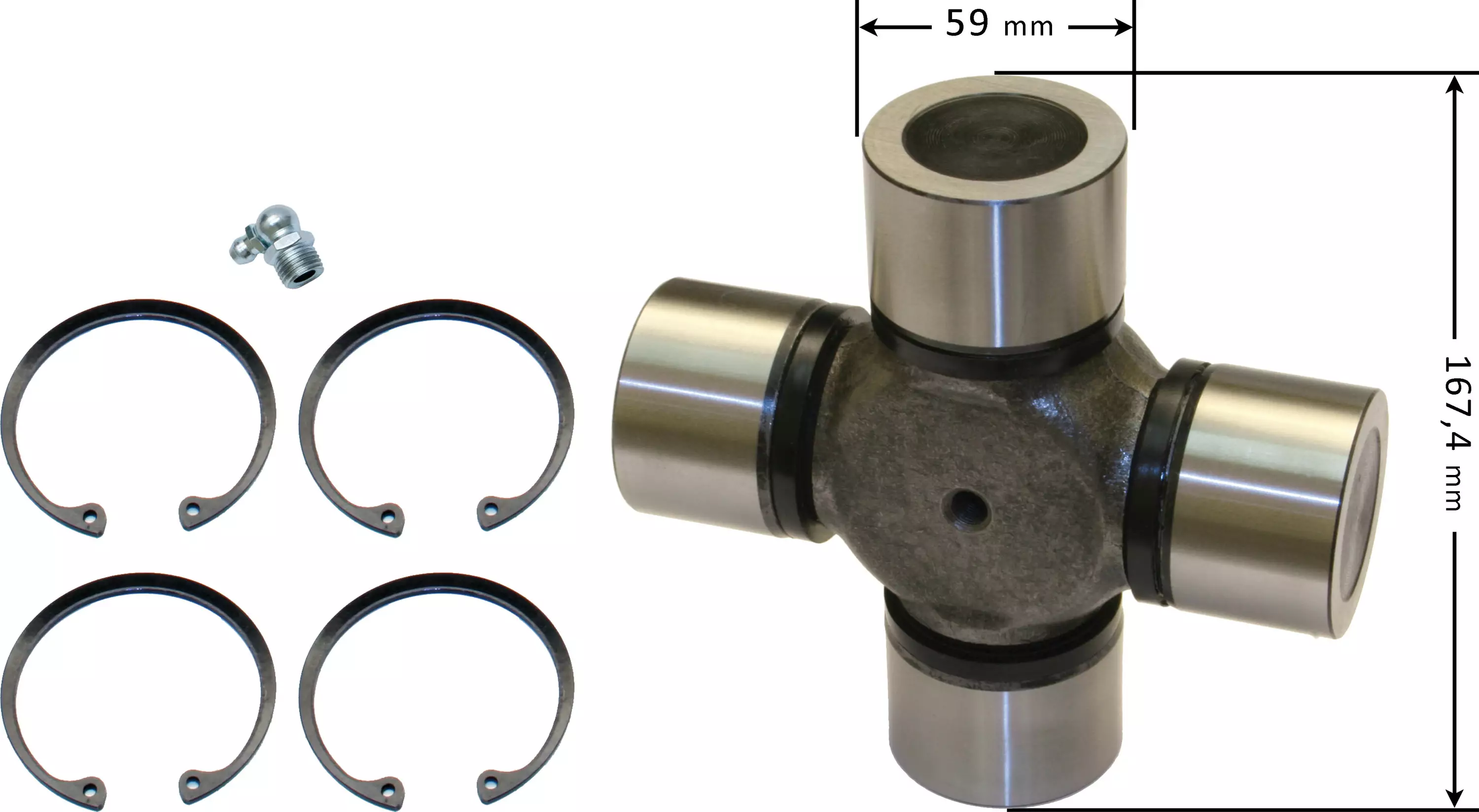 Volvo-yhteensopiva. OEM-numerot: 1068253, 1651237, 23420767 Kardaanin nivelristikko Volvo/Iveco Rasvanippa keskellä