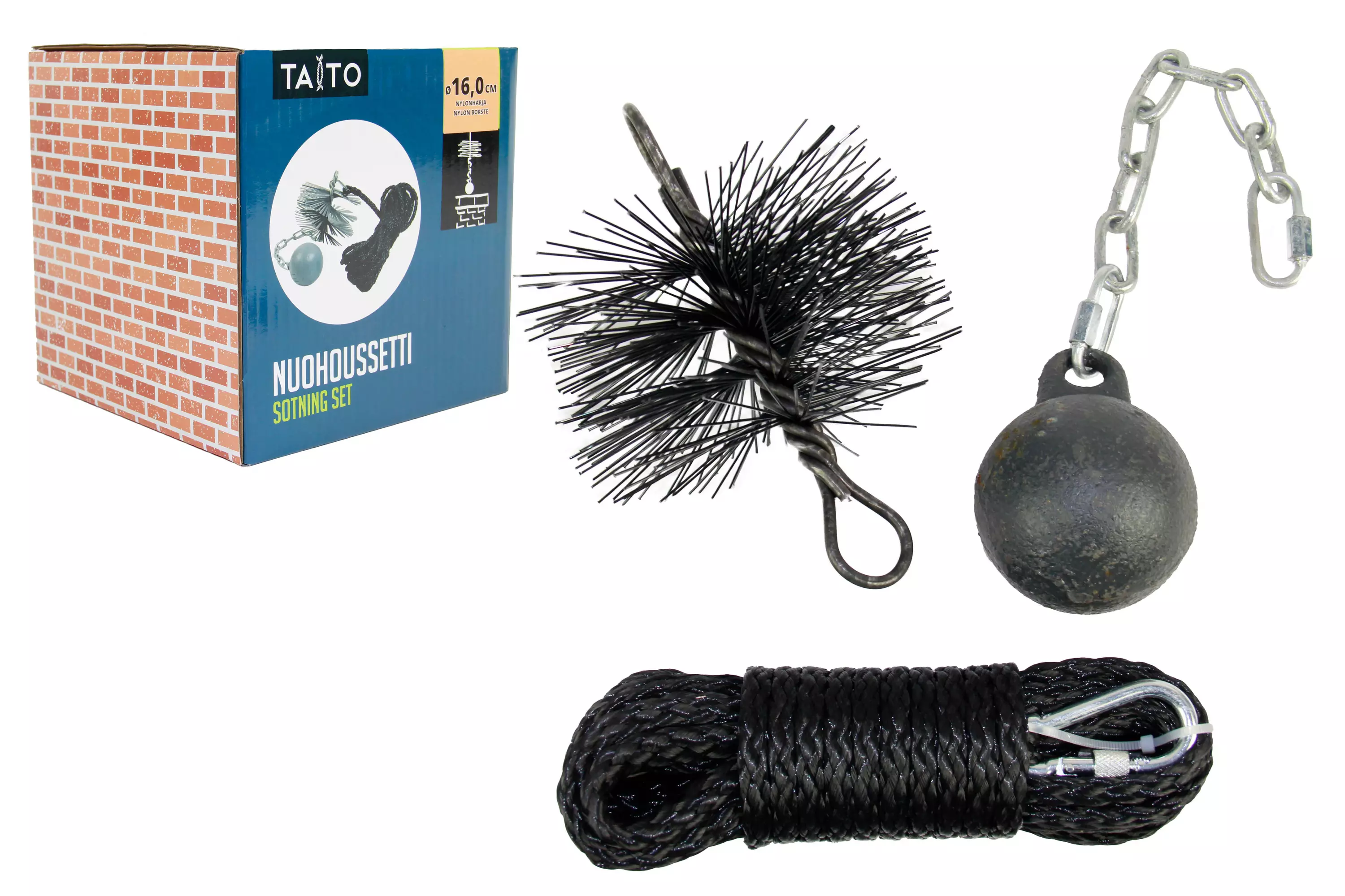 Taito nuohoussetti sisältää nylonkuituisen nuohousharjan, joka sopii rosteripiippujen nuohoamiseen. Harjan lisäksi setti sisältää nuohousköyden ja painokuulan.
