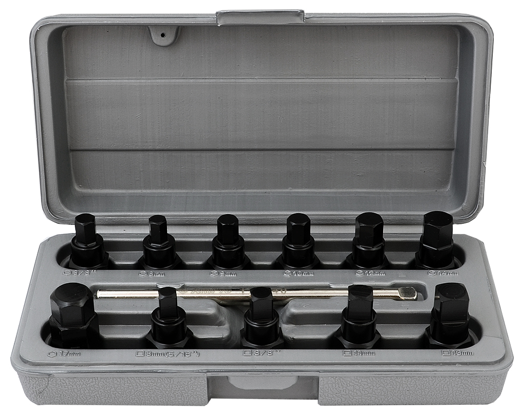 Öljytulppahylsysarja AmproSisältää kuusioavaimet: * 8mm BMW (A), Ford (B), GM (A, B) * 9mm GM (A) * 10mm Ford (A) * 12mm Lancia (B, C), Peugeot Talbot (B, C) * 14mm Lancia (B, C), Mercedes (A, B)... Lue lisää