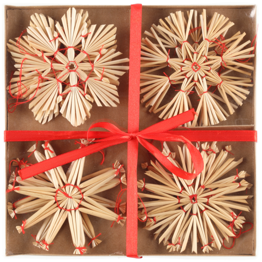 Olkikoristeet edustavat perinteisintä joulukoristelua, mutta ne sopivat täydellisesti myös moderniin joulukotiin. Oljesta valmistetut koristeet tuovat joulukoristeluun lämpöä ja luonnollisuutta ja upeaa kontrastia. Pakkauksessa 12 koristetta, neljä erilaista. Koko noin 11 cm.