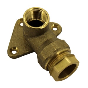 Muoviputken hanakulma, materiaali: erikoismessinki, koko: 3/4" x 25 mm. Tyyppihyväksytty.