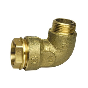 Muoviputken kulmaliitin, materiaali: erikoismessinki, koko: 1x32 mm UK.