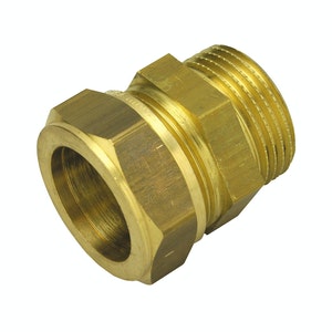 Puserrusliitin, materiaali: erikoismessinki, koko: 28 mm x 1", ulkokierre. Tyyppihyväksytty.