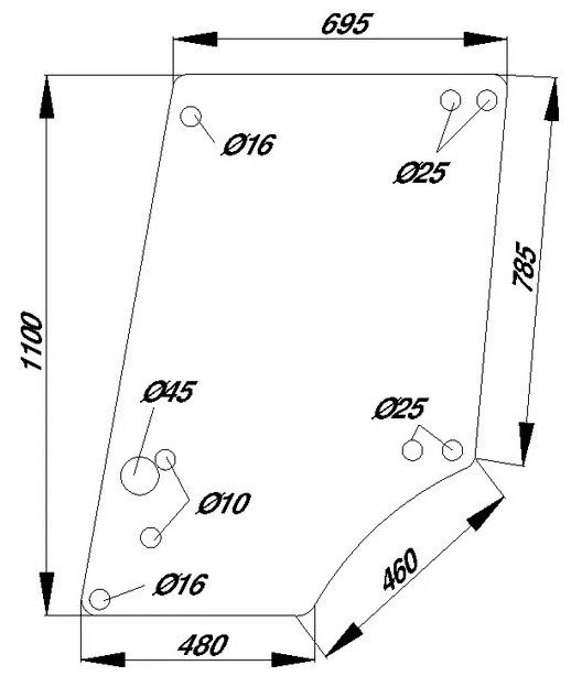 Ylempi lasi traktorin oveen. - sopii oikealle ja vasemmalle puolelle - mitat: katso kuva - paksuus: 6 mm - vastaa osaa: John Deere L57904 Sopii seuraaviin John Deeren malleihin: - 940 - 1040 - 1140 -... Lue lisää