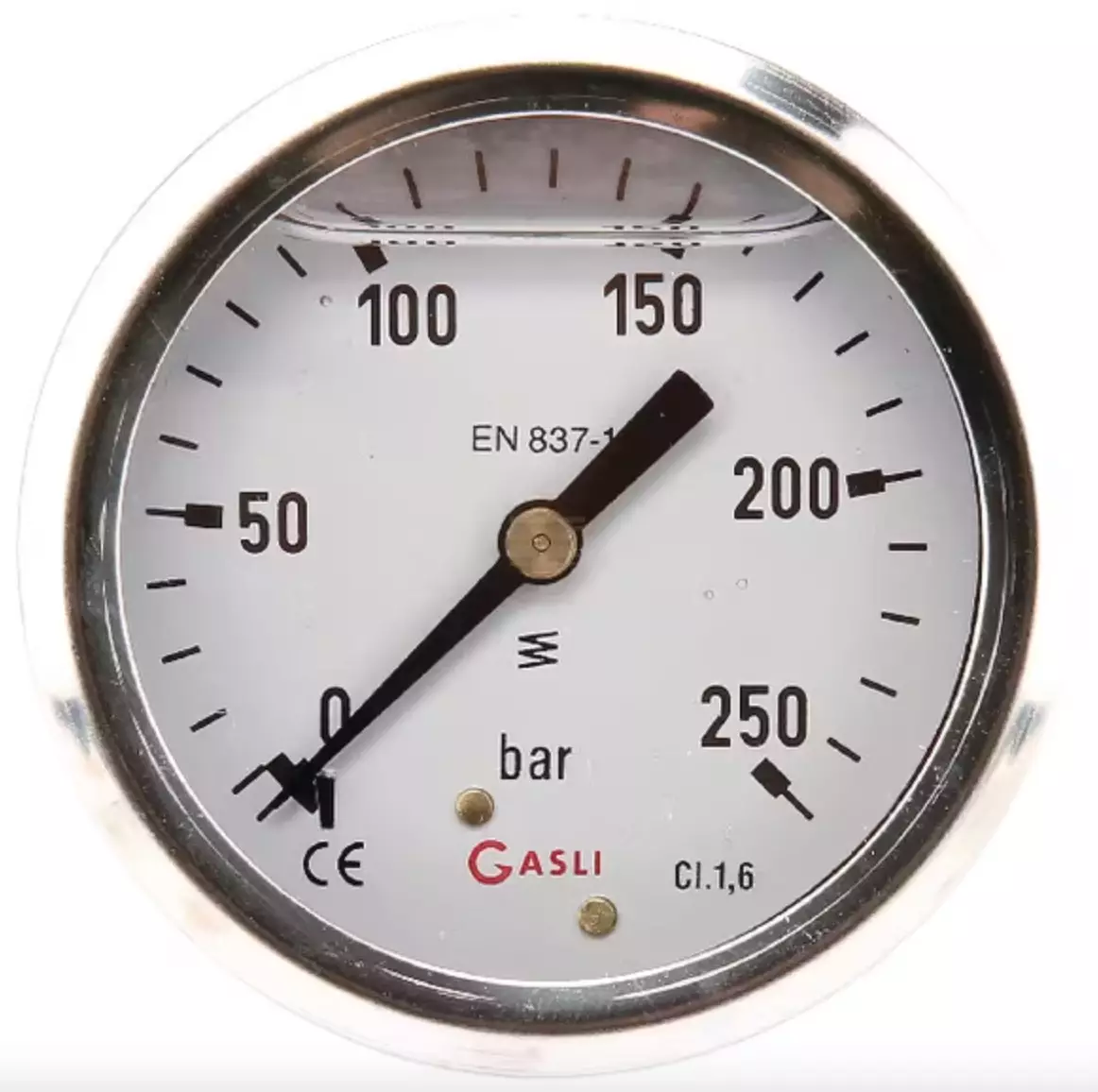 Painemittarissa on glyseriini täyte, joka parantaa tarkkuutta ja kestävyyttä.