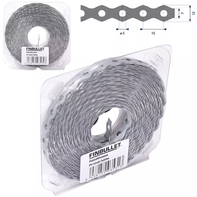 Patenttivanne 12 mm x 0,7 mm x 10 m, 5 mm rei'illä