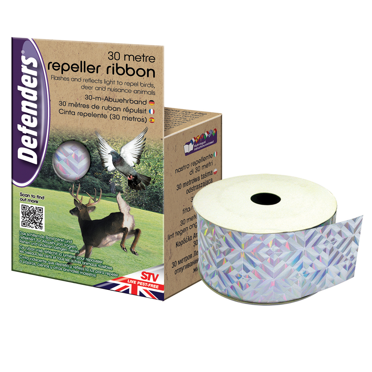 Auringossa voimakkaasti välkehtivä nauha suojaa viljelyksiä lintujen vahingoilta - sopii myös veneisiin, terasseille ym. - rullassa 30 metriä