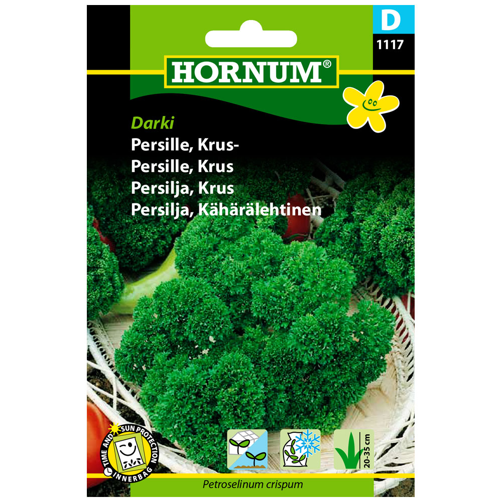 Kähärälehtinen, tummanvihreä mausteinen lajike - jalostettu tunnetusta Clivi-lajikkeesta - sisältää runsaasti C-vitamiinia - n. 600 siementä