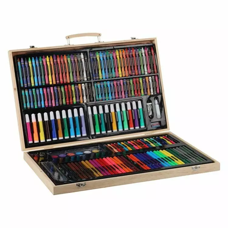 - puisessa salkussa 180 piirustus- ja maalaustarviketta