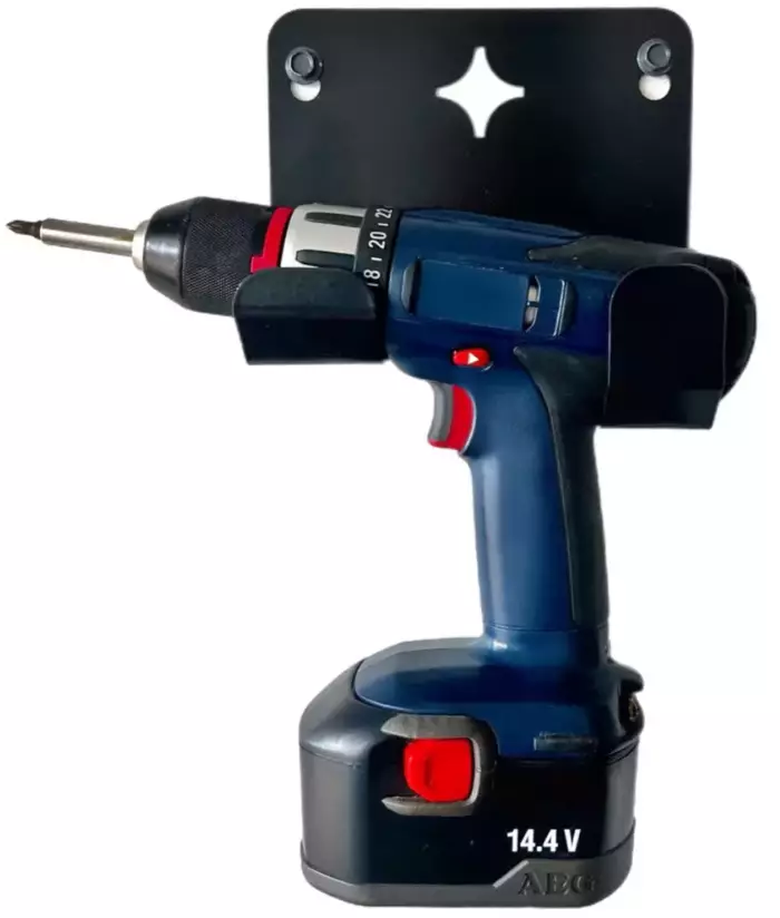 Seinään kiinnitettävä metallinen pulverimaalattu teline porakoneelle. Kotimainen tuote. Paino 0.47 kg