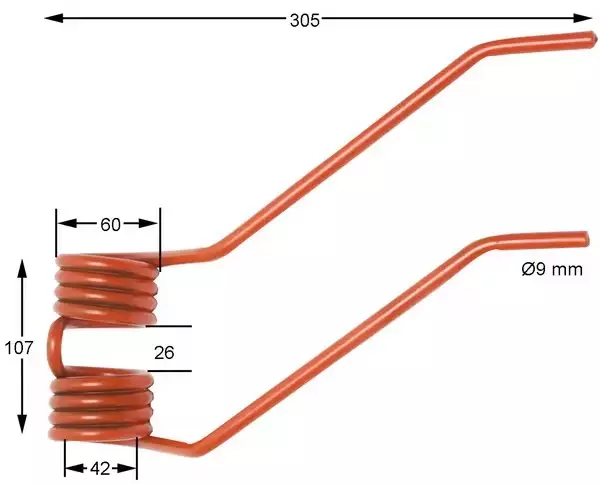 Fransgårdin alkuperäisosa. - kokonaispituus: 305 mm - leveys: 107 mm - lankavahvuus: 9 mm - kelan sisähalkaisija: 42 mm
