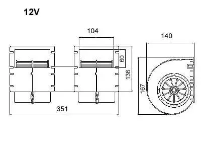 Puhallin täydellinen 12V 3-nopeuksinen 350x136 mm