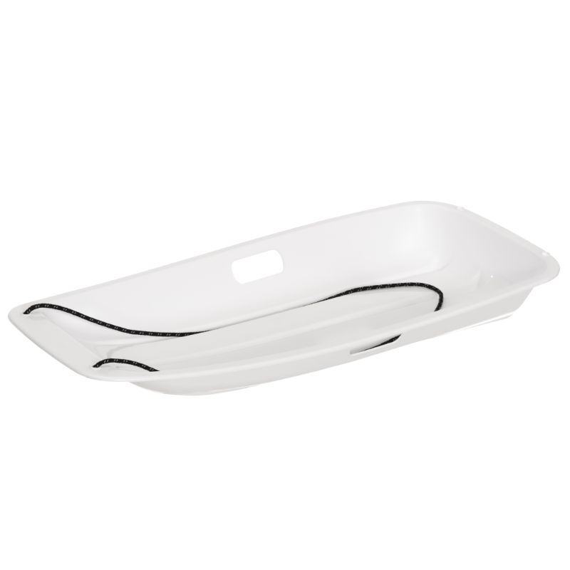 Valkoinen muovipulkka heijastavalla vetonarulla - mitat 89,00 x 44,00 x 10,50 cm - paino 0,85 kg - materiaali HDPE