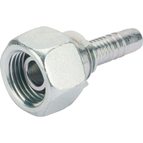 Sinkitystä/valkopassivoidusta teräksestä valmistettu liitin 10 mm:n (3/8") hydrauliletkulle.