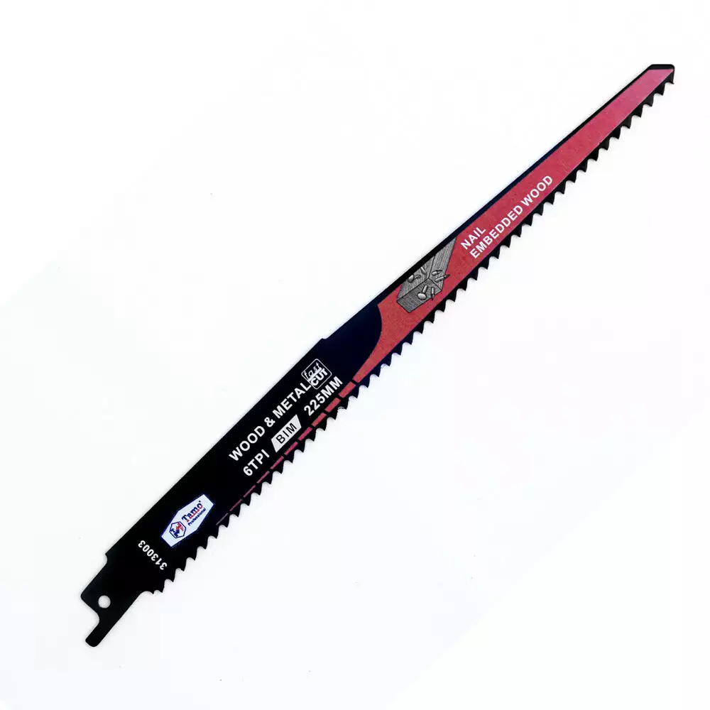 Puukkosahanterä puulle ja metallille. Terän pituus 225mm, hammastus 6TPI. Soveltuu mm. naulaisen puun, lastulevyjen, muoviprofiilien leikkaamiseen. Yhteensopiva yleisimpien konemerkkien kanssa.... Lue lisää