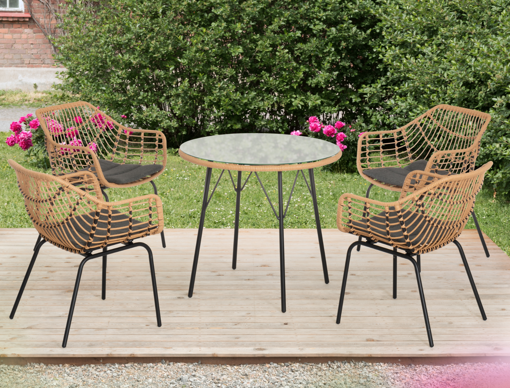 Viimeistele terassi, piha tai parveke kesään ja vietä siellä mukavan leppoisia hetkiä perheen ja ystävien seurassa. Todella kaunis polyrottingista valmistettu "rottinki" istuinryhmä on kevyt ja... Lue lisää