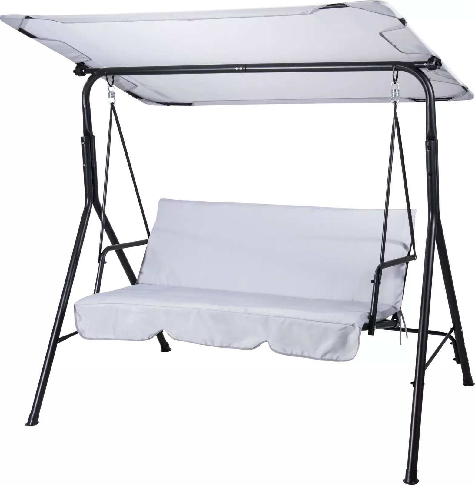 katoksella ja pehmusteilla varustettu pihakeinu 3 hengelle - vaalenaharmaat tekstiilit, musta runko - mitat noin: 175x110x151cm - istuimen koko: 127x47cm - selkänojan mitat: 127x47cm - runko: 38 ×... Lue lisää