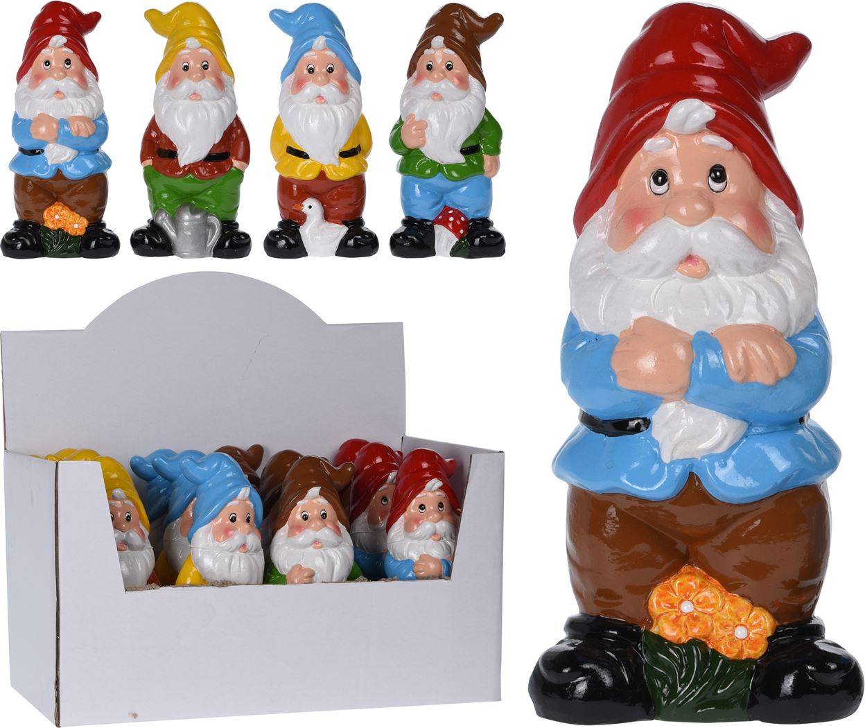 värikkäät 20 cm korkeat puutarhatontut - soveltuu koristeeksi katoksen alle, ei kestä pitkään jatkuvaa kosteutta tai pakkasta - 4 eri väriä joista tilatessasi saat sattumanvaraisesti jonkin... Lue lisää