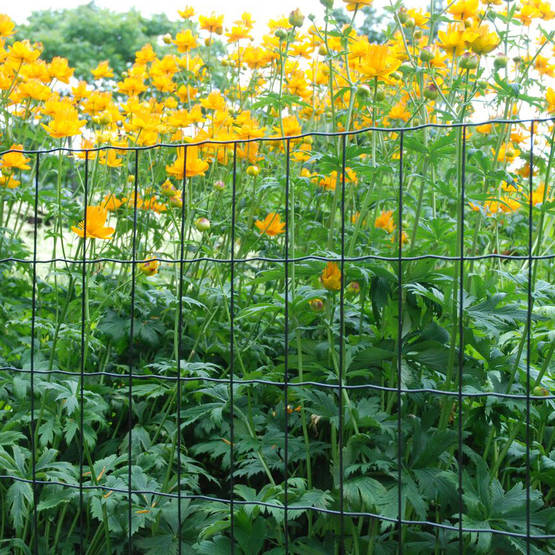 hitsattu verkko muovipinnoitetusta teräslangasta Ø 1,9/2,1 mm - silmäkoko 50 x 100 mm - kestävä ja huomaamaton verkko kaikenlaiseen pihojen ja viljelysten aitaamiseen