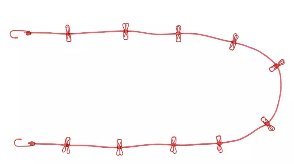 Joustava pyykkinaru kymmenellä metallisella pyykkipojalla. Kätevä pyykinkuivatukseen pihalla ja kulkee helposti mukana esim. karavaanareilla ja retkeilijöillä. Helppo ottaa käyttöön joustavan köyden päissä olevien metallikoukkujen ansiosta. Pituus n. 190-240 cm. Köyden halkaisija 5 mm.