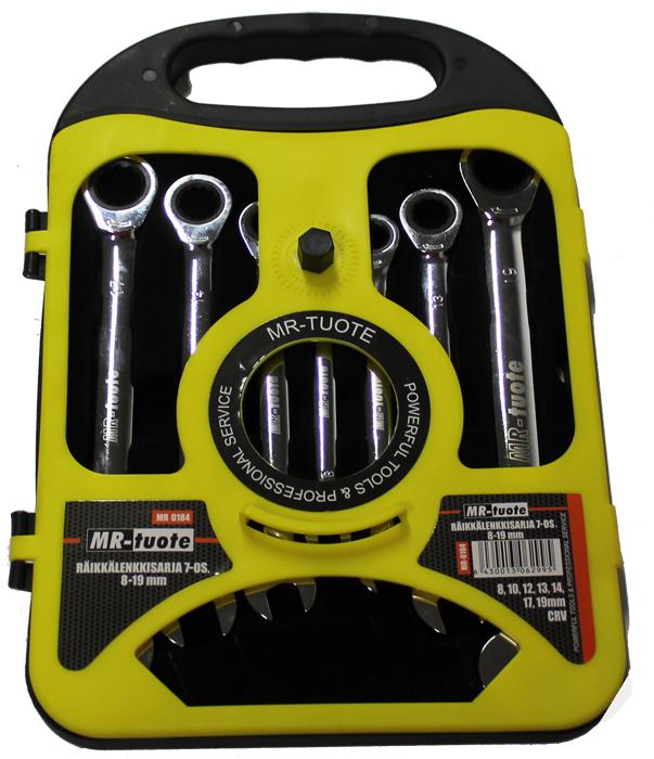 7-osainen räikkäavainsarja - T9, T10, T15, T20, T25, T27, T30, T40 - muovinen säilytyskotelo
