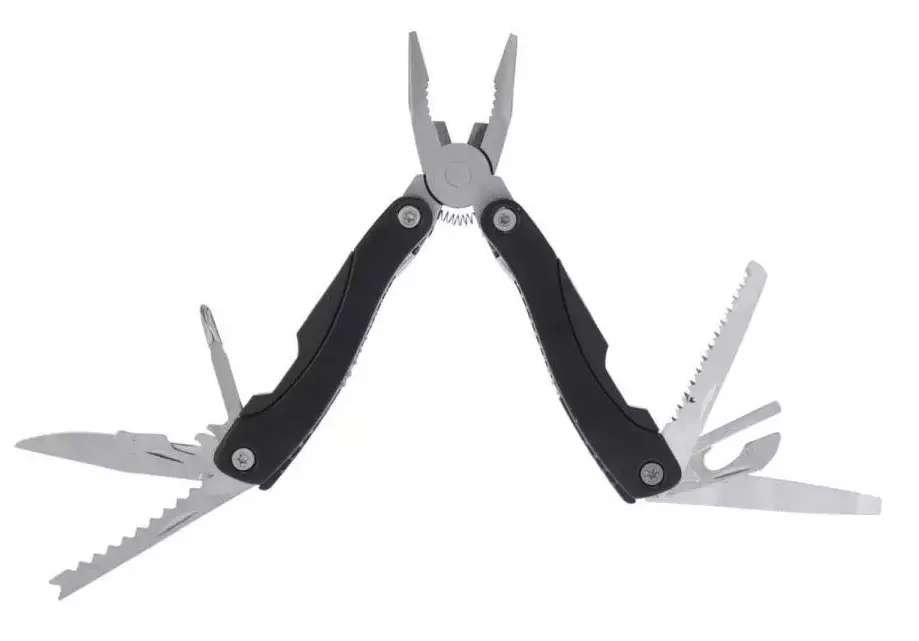 Monitoimipihdit 16 toiminnolla, ruostumatonta terästä. Avattuna 15,5 cm, suljettuna 10 x 4,5 x 2 cm.