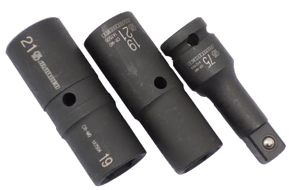 - 17x19 mm, 21x22 mm kääntöhylsyt + 1/2" x 75 mm jatkovarsi