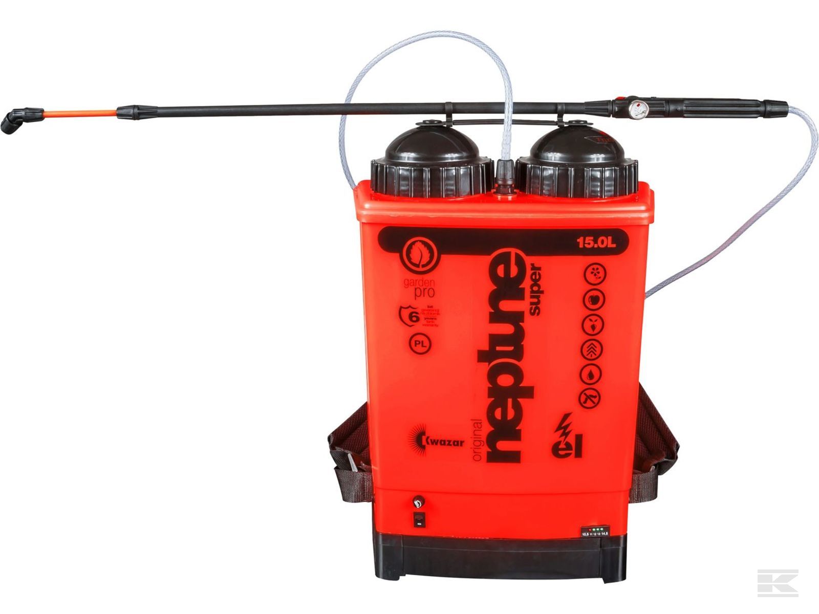 Kwazar Neptune akkukäyttöinen reppuruisku - säiliö 15 litraa - sopii niin ammattikäyttäjällä kuin kotipuutarhurille.