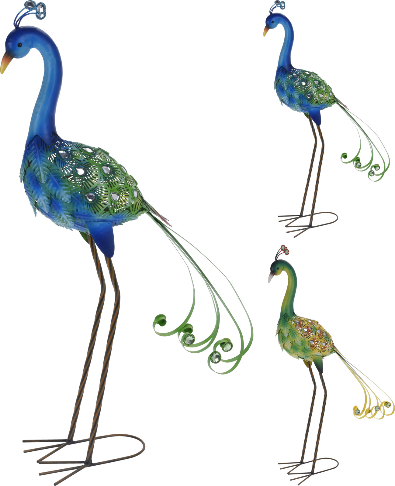 Kaunis ja värikäs peltinen riikinkukko puutarhaan - korkeus 78 cm - väri: sininen ja vihreä - tilatessasi saat sattumanvaraisesti jomman kumman värin (lajitelmatuote)