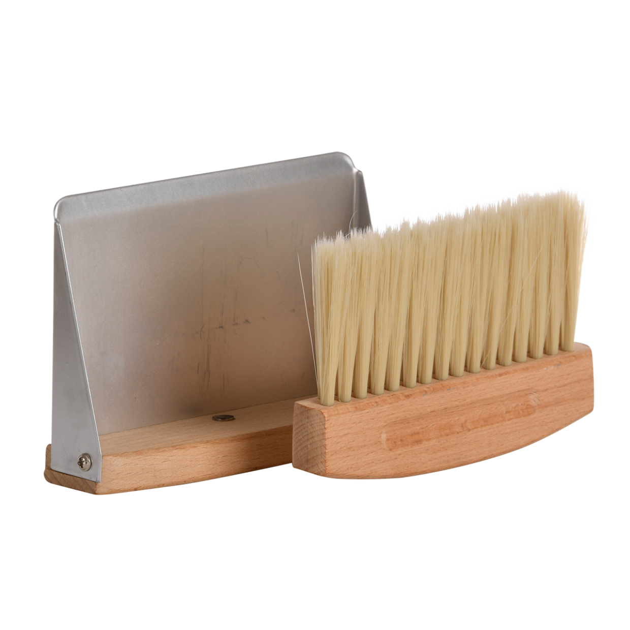 Kätevä pikku pöytäharjasetti esim. ruukutuspöydän siistimiseen - harja kiinnittyy magneetilla lapioon kiinni - materiaali pyökki ja sinkki - leveys 16 cm