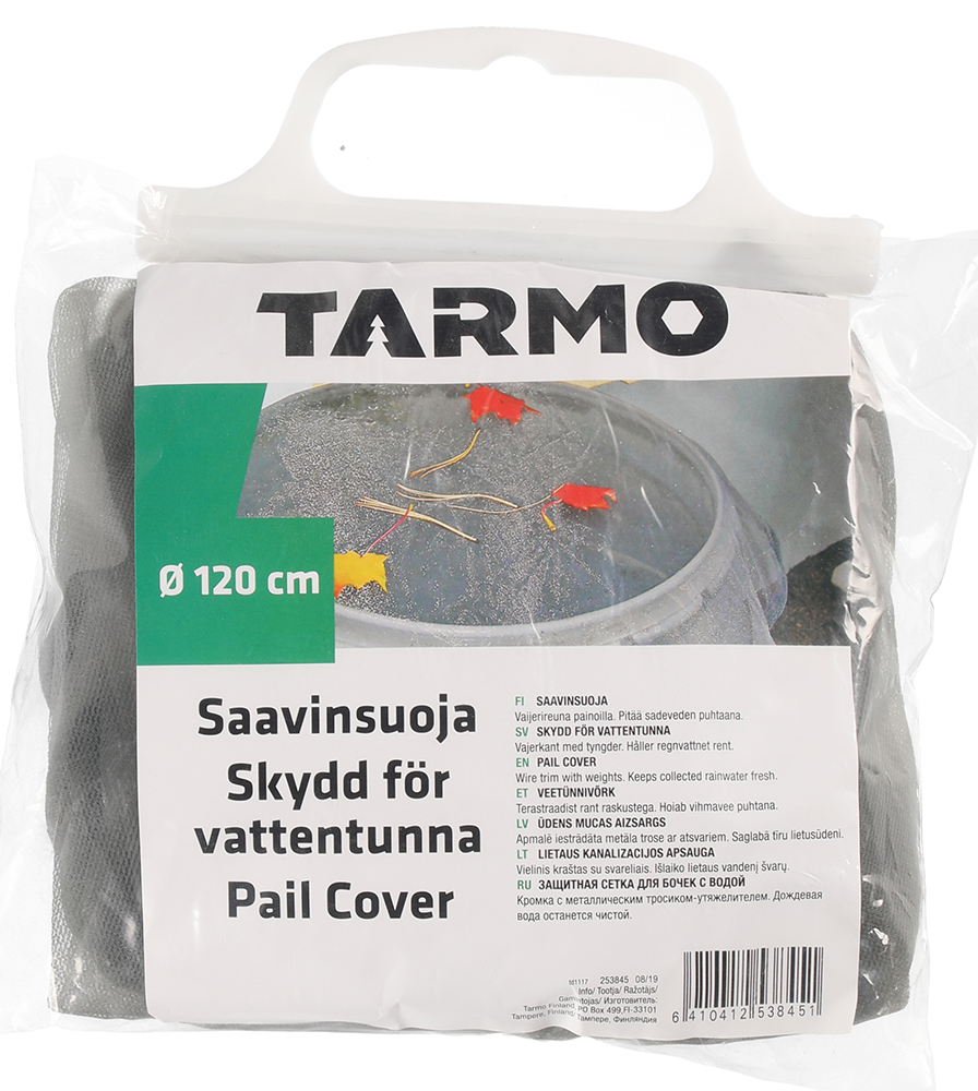 kätevä sadevesiastian päälle laitettava verkko - verkon reunassa vaijerireuna painoilla, pysyy hyvin paikoillaan - pitää sadeveden puhtaana roskista - paino 0,72 kg - halkaisija 120 cm... Lue lisää