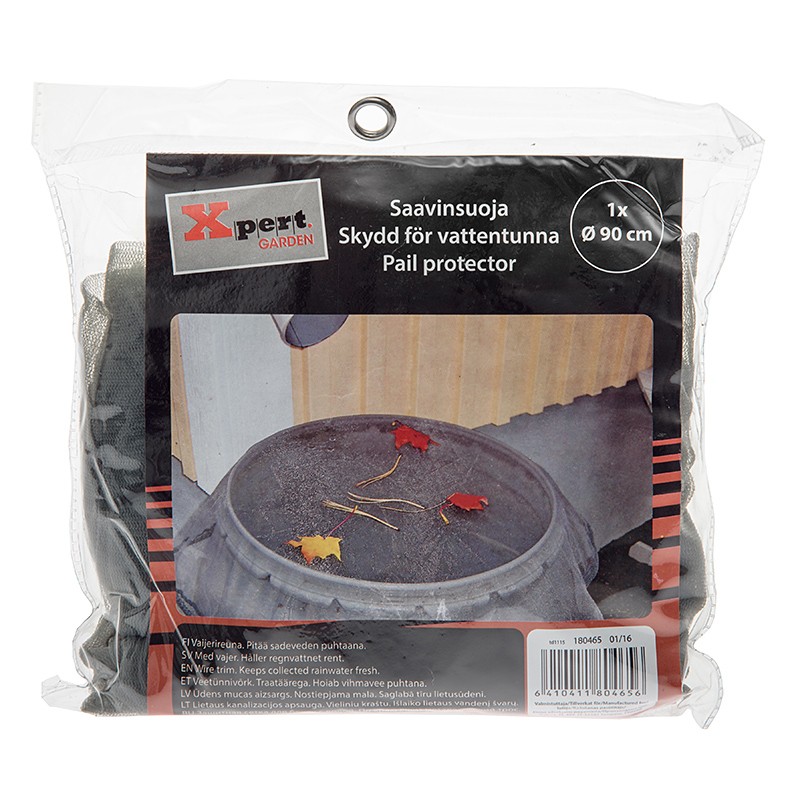suojaa roskilta ja epäpuhtauksilt - kätevä suoja mm. sadevesitynnyreille - halk. 90 cm - raskas vaijerireuna varmistaa paikallaan pysymisen