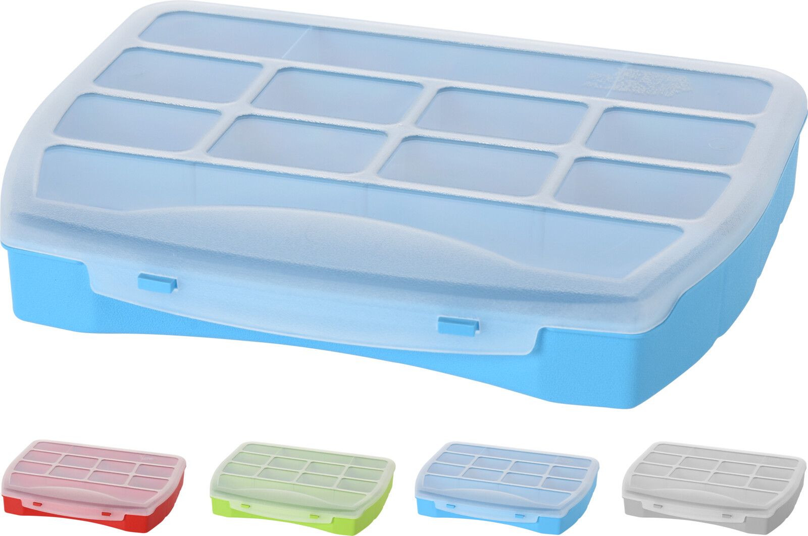- 12-osainen muovinen lokerikko läpinäkyvällä kannella