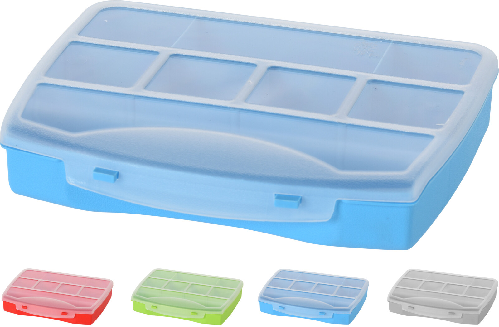 - 8-osainen muovinen lokerikko läpinäkyvällä kannella