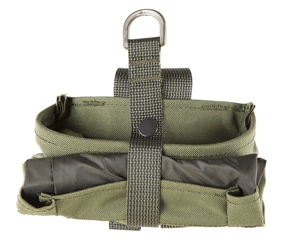 Tyhjien lippaiden nopealle pudottamiselle tarkoitettu tasku. Kiinnitettävissä liiveihin, reppuihin ja vöille. Jäykistetty suuaukko, syvä taskupussi vahvistetulla pohjalla. Rullattavissa kuljetusta varten, varmistus nepparilla.