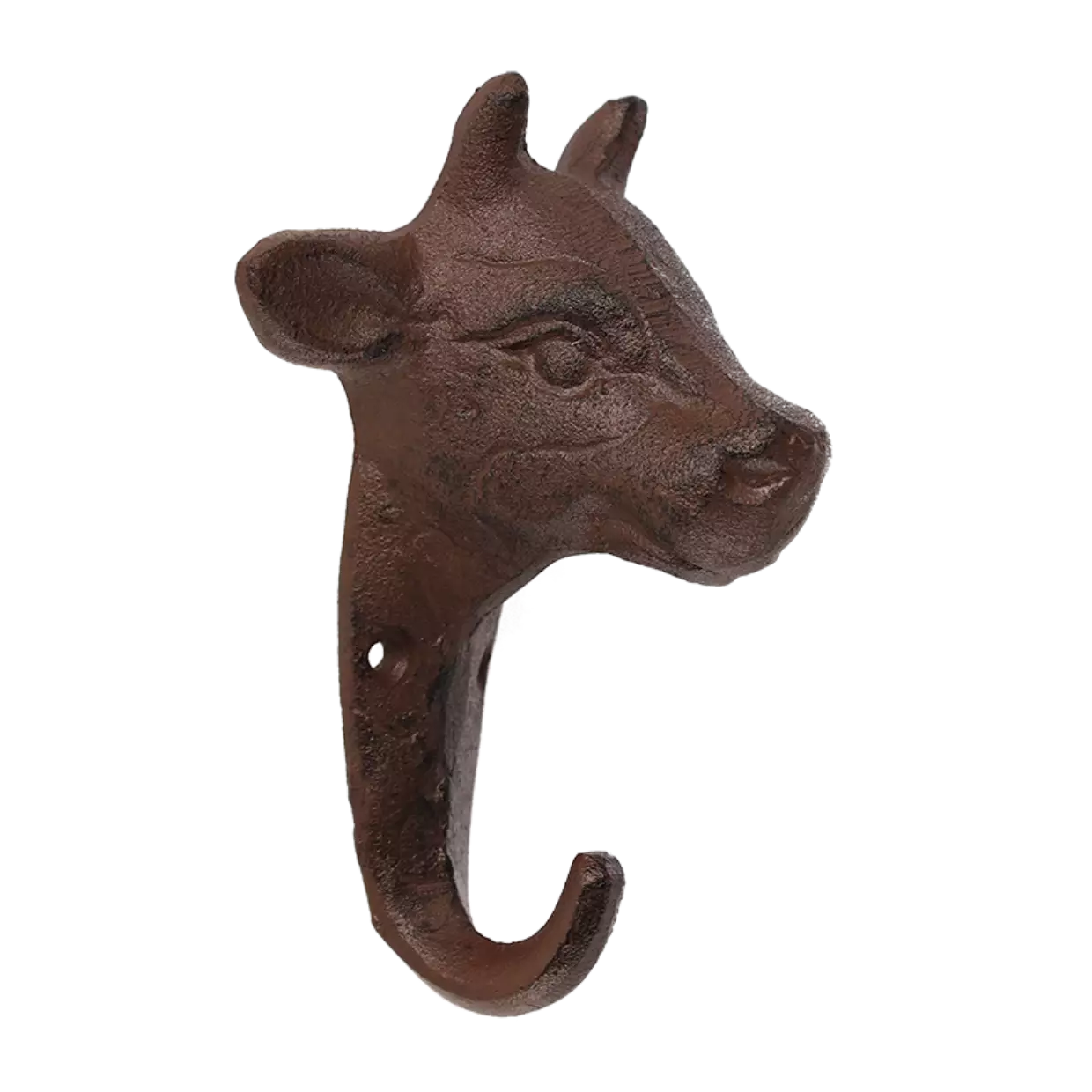 valurautainen seinäkoukku lehmäaiheella - mitat: 9.3 x 6.4 x 12.8 cm - paino 0,378 kg