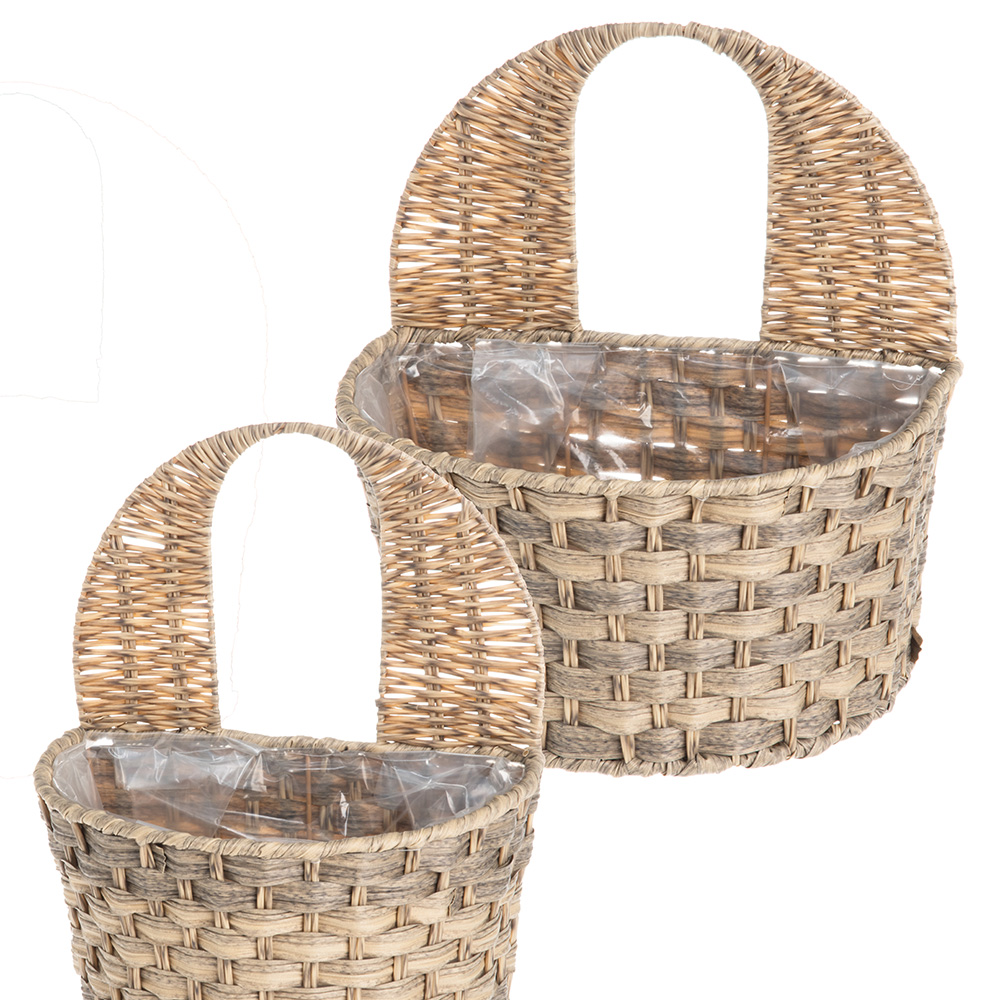 Seinäruukku / seinäamppeli metallivahvikkeista koripunosta - koko 32x22x17 cm - muovitettu sisäpuolelta - pakkauksessa kuvasta poiketen yksi seinäruukku