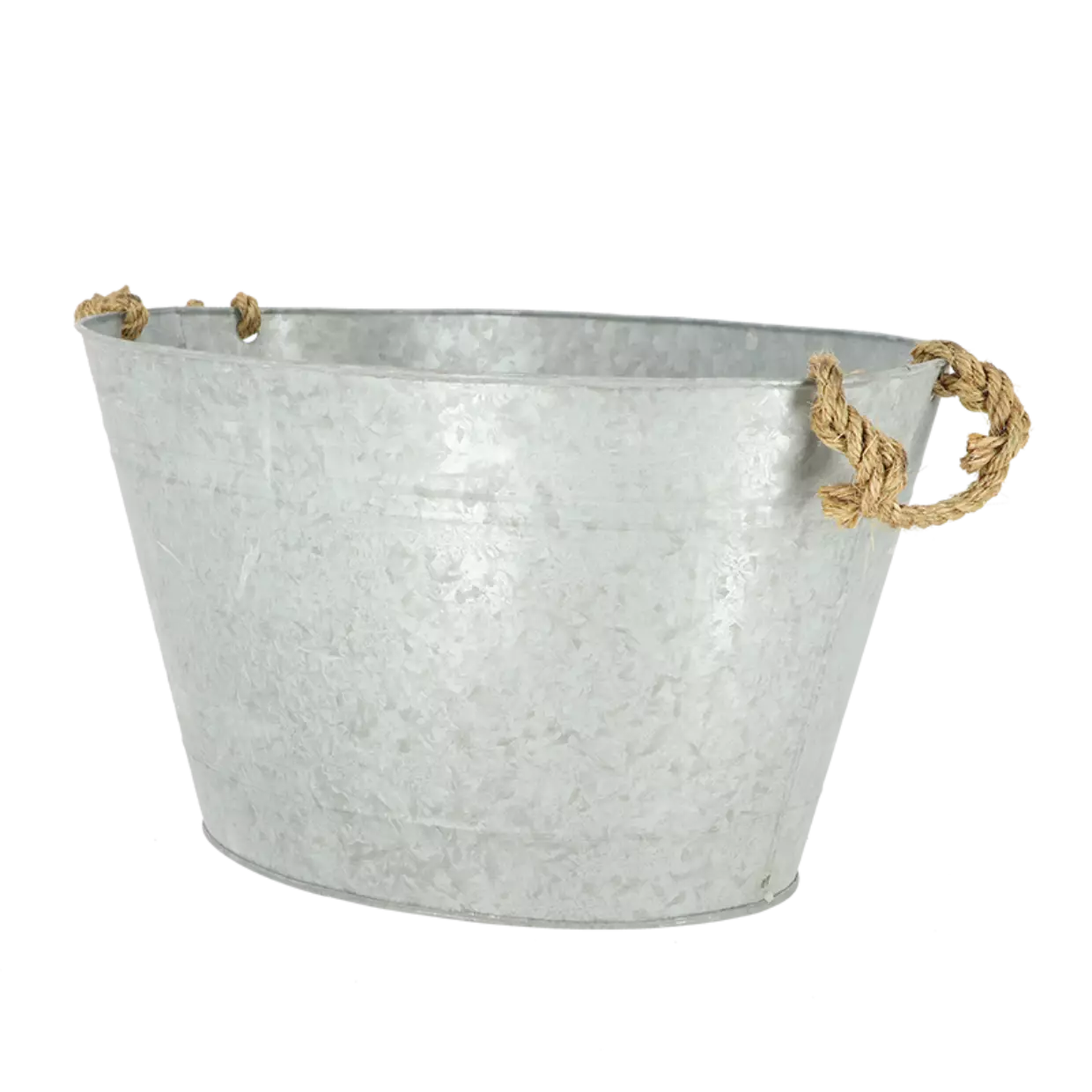 galvanoitu peltiastia juuttiköysikahvoilla - mitat noin: 50 x 36 cm - korkeus noin: 27 cm - tilavuus: 22 litraa - paino noin 1,2 kg
