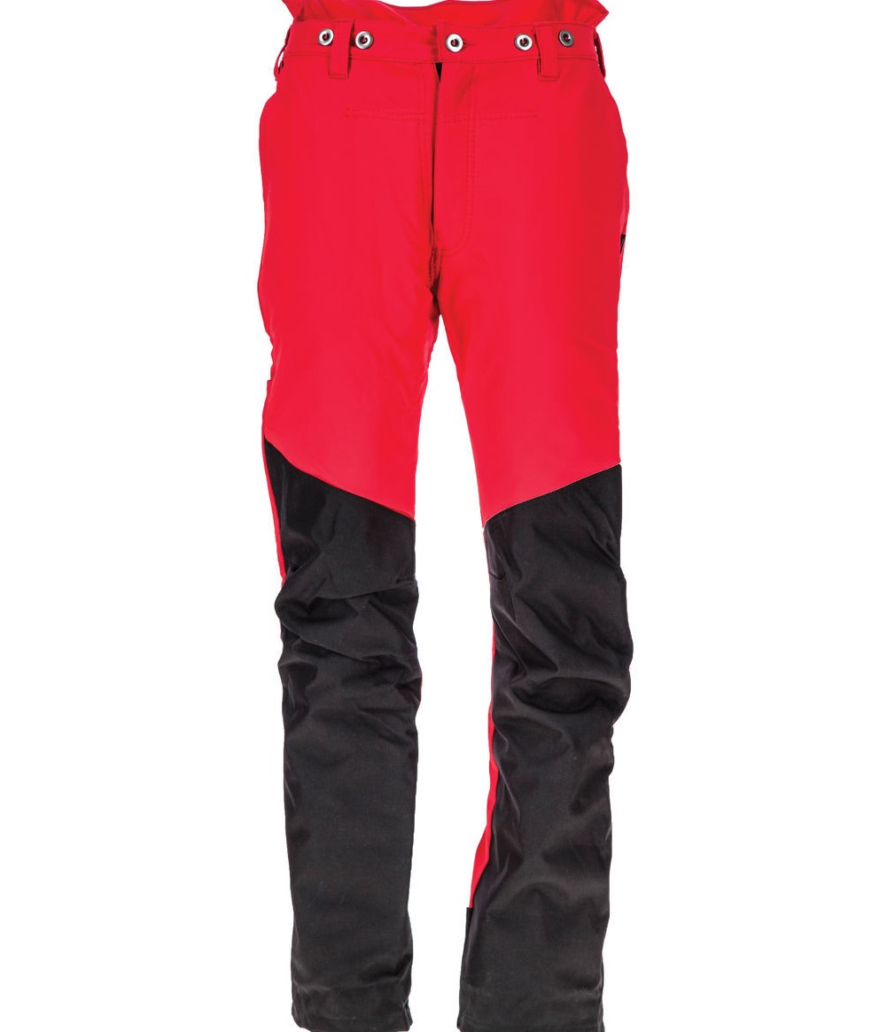 Viiltosuojahousut SIP Flex - väri: puna-musta - tukeva ja joustava päällinen, vahvikkeet polvien kohdasta aina lahkeiden alasaumaan asti - sopii metsätöihin sekä työtehtäviin jotka edellyttävät puuhun kiipeämistä - housuissa on kahdet sivutaskut, läpällinen takatasku ja mittatasku - housuissa on joustava vyötärö ja sepalus - napit henkseleitä varten ( katso yhteensopivat tuotteet ) - EN 381-5, type A, luokka 1, 20 m/s mukaan - materiaali 93% polyamidi, 7% elastaani