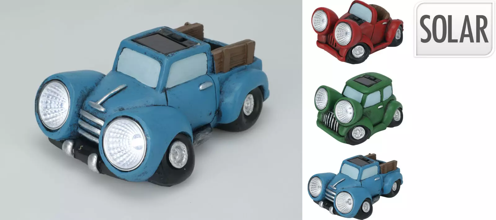 Puutarhakoriste auto, jonka ajovalot latautuvat aurinkokennolla - mitat 17 x 8 x 11 cm - materiaali polystone - lajitelmassa eri värejä (kuvassa), joista tilatessasi saat jonkin.... Lue lisää