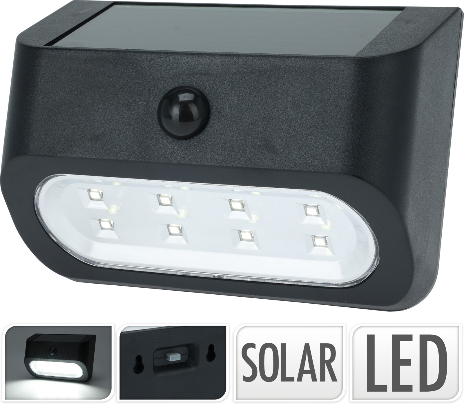 - latautuu päivänvalossa, syttyy valon vähetessä ja sammuu taas valon määrän lisääntyessä