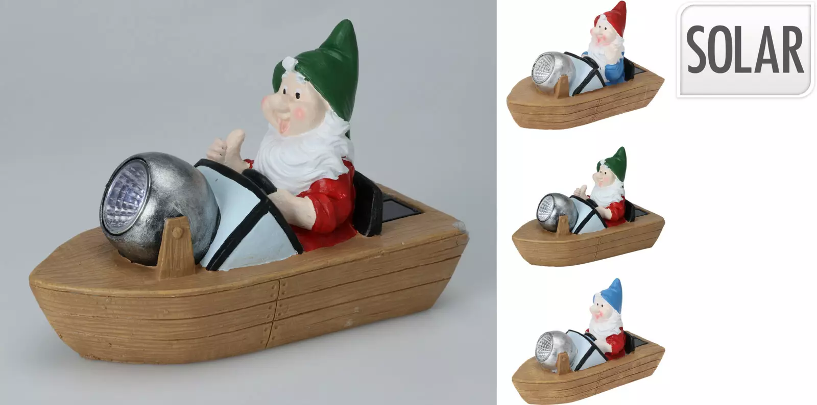 Puutarhatonttu veneilyllä - koko n. 20 x 13 cm - aurinkokenno lataa veneen ajovalon - lajitelmatuote: lajitelmassa 3 hieman eri väristä tonttua (kts. kuva), joista tilatessasi saat jonkin... Lue lisää