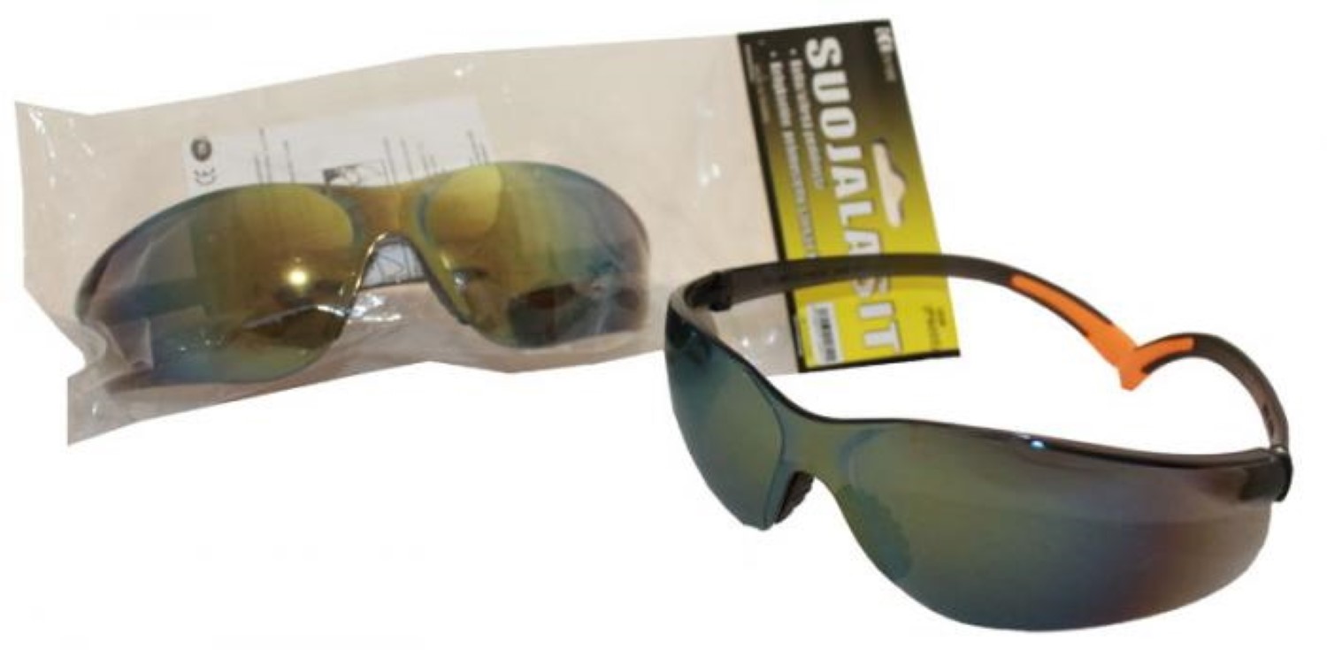 Suojalasit peilipinnalla - Kelta/vihreä peililinssi - Kehyksetön, pehmustettu sangan kärki - EN166