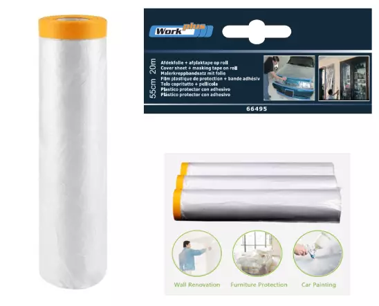 Suojamuovirulla 55cm x 20m Käytetään maalauksessa. Suosittu tuote sisämaalaukseen ja maalauskohteisiin, jossa tarkka suojaaminen tärkeää.