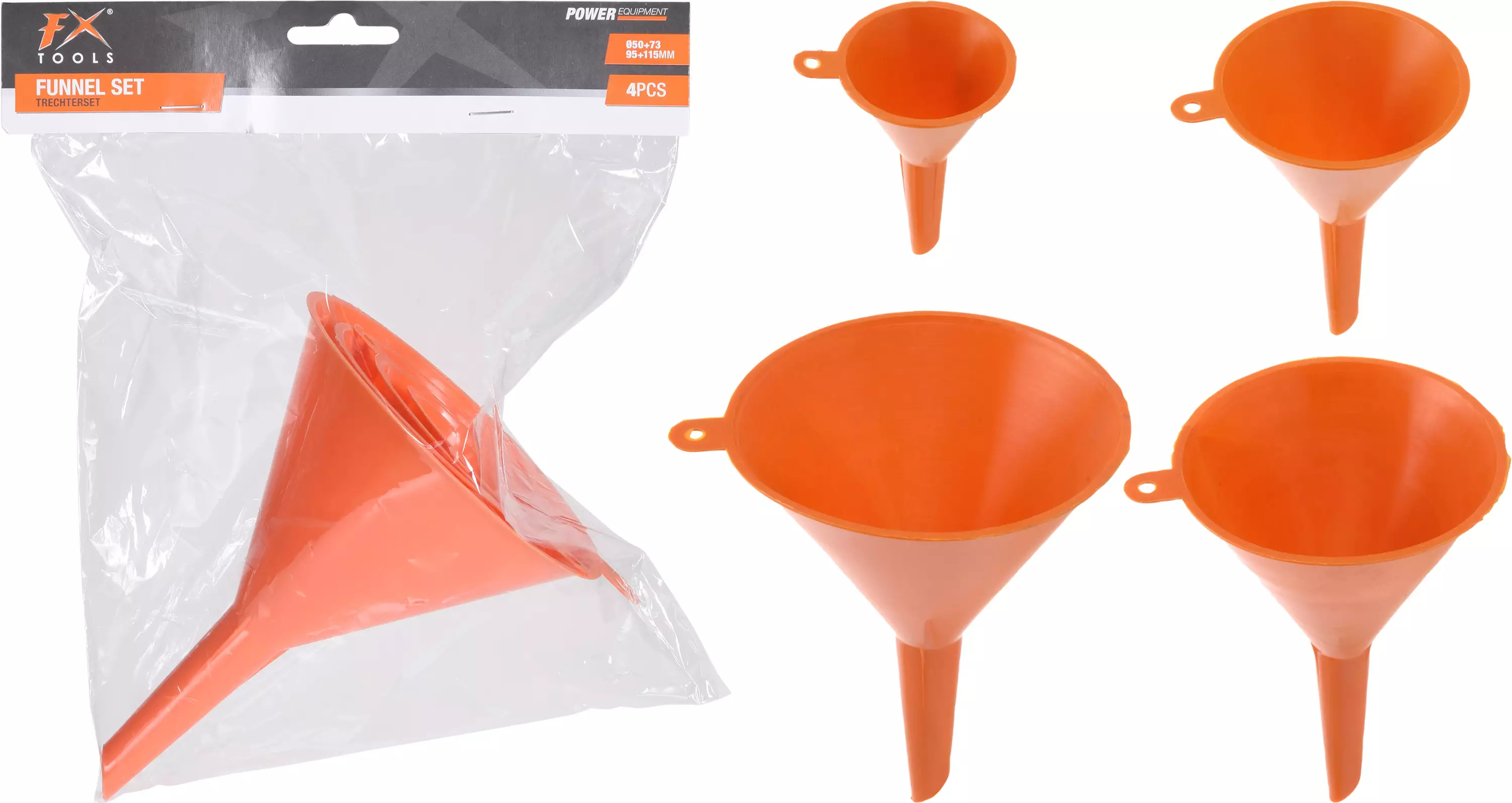 4 osainen suppilosetti yleiskäyttöön. Suppiloiden halkaisijat: 50, 73, 95 ja 115mm.
