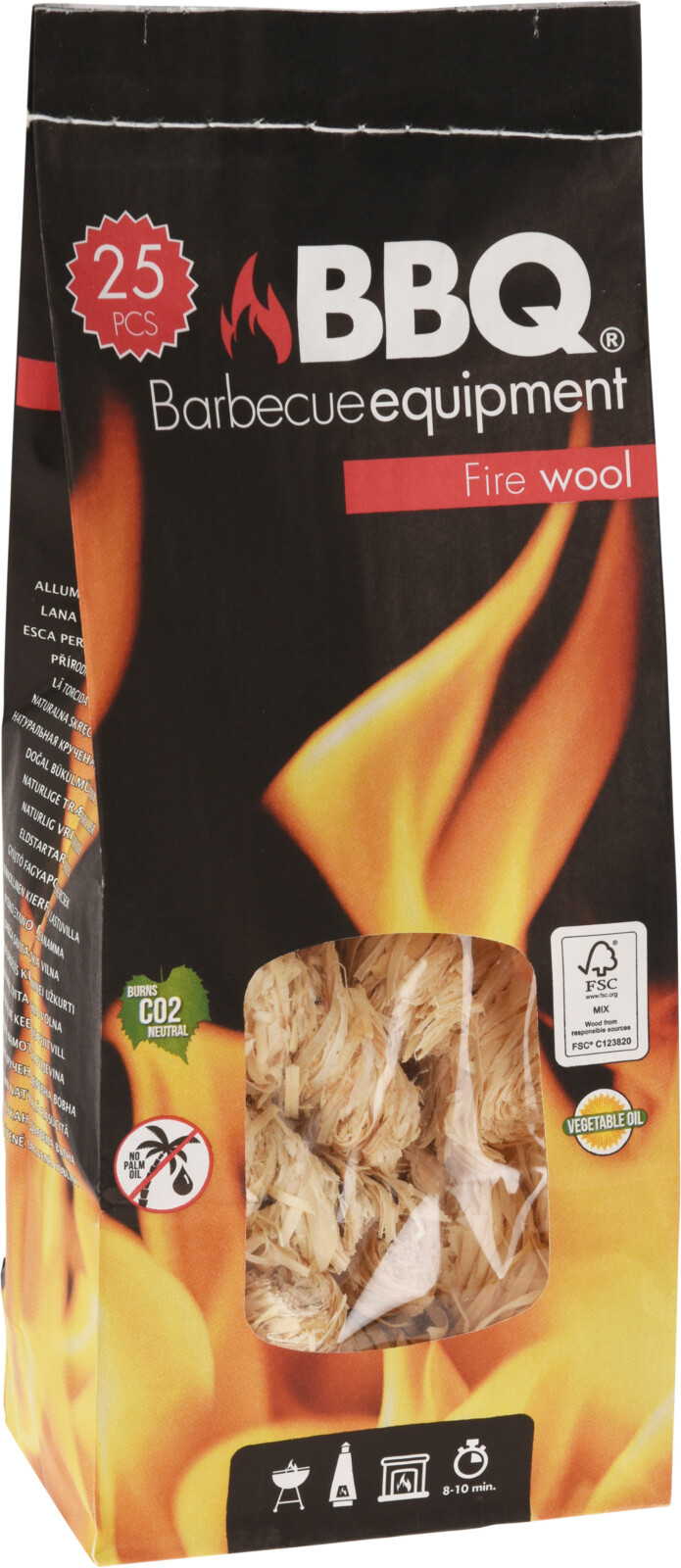 puulastuista valmistetut sytytyspalat, jotka on päällystetty kasviöljyllä - helppoon takan, saunan, grillni tai nuotion sytytykseen - pakkauksessa 25 kpl