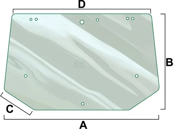 Sävyttämätön ylempi takalasi traktoreihin. - pituus A: 1 500 mm - pituus B: 908 mm - pituus C: 330 mm - pituus D: 1 300 mm - paksuus: 5 mm - vastaa osaa: Case IH / Ford / New Holland 82016997... Lue lisää