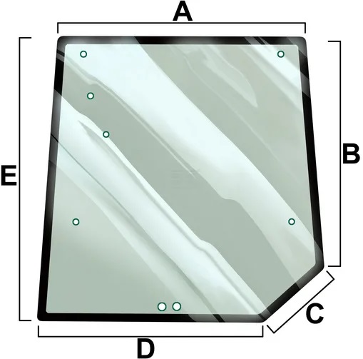 Sävytetty ylempi takalasi traktoreihin. - pituus A: 740 mm - pituus B: 680 mm - pituus C: 255 mm - pituus D: 690 mm - pituus E: 860 mm - paksuus: 5 mm - vastaa osaa: Massey Ferguson / Landini... Lue lisää