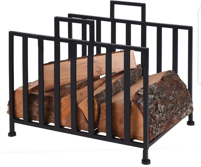 Tyylikäs musta halkoteline - runko maalattua metallia, vahvuus 10 mm - korkeus 35 cm - pohja 40x31 cm
